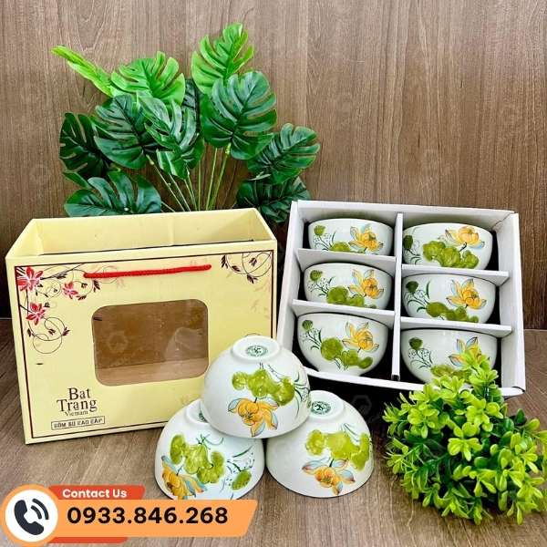 Tùy vào nhu cầu, bạn có thể lựa chọn bộ bát đĩa phù hợp để làm quà tặng như bộ 6 bát con, bộ 12 bát hay một bộ đầy đủ gồm bát con và đĩa. Đặc biệt, bộ bát đĩa sẽ được đặt trong hộp carton hay hộp xi đỏ lót lụa, giúp món quà trở nên tinh tế và tăng thêm giá trị của món quà.