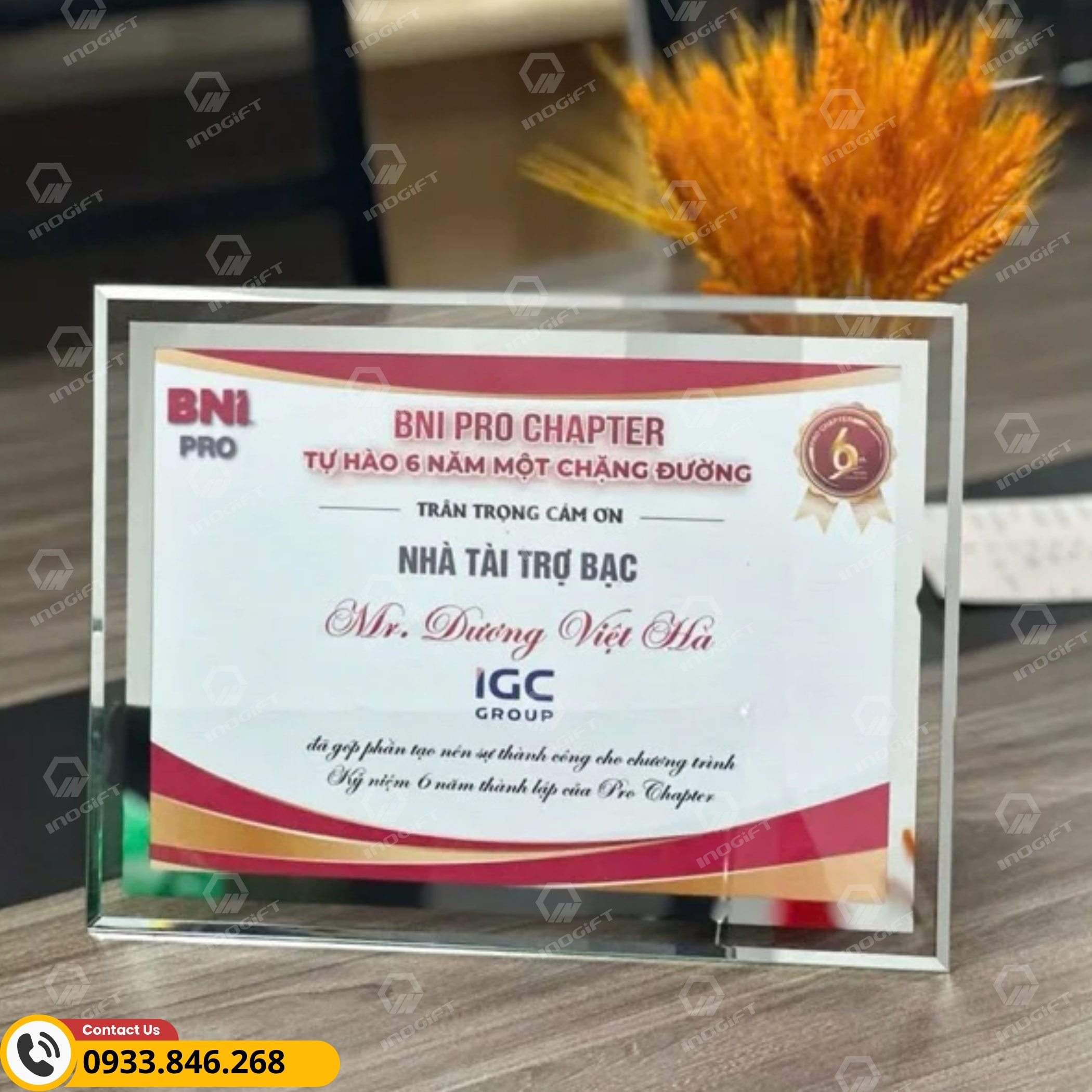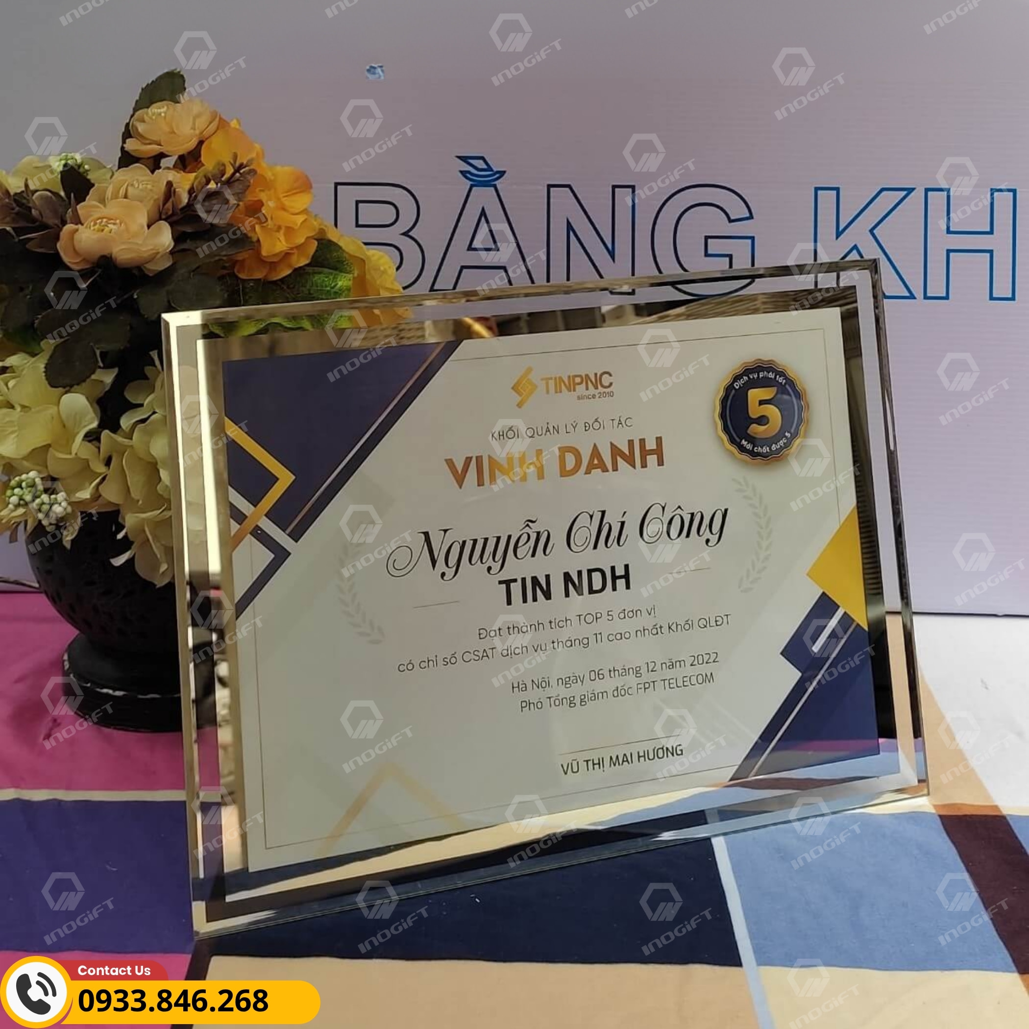 Một tấm bảng vinh danh đẹp, khắc tên và thành tích rõ ràng còn là biểu tượng của sự ghi nhận công bằng và trân trọng. Món quà này không đắt đỏ về vật chất, nhưng lại chứa đựng giá trị tinh thần sâu sắc – giúp nhân viên cảm nhận được rằng mọi nỗ lực của họ trong năm qua đều được doanh nghiệp ghi nhận và đánh giá xứng đáng.