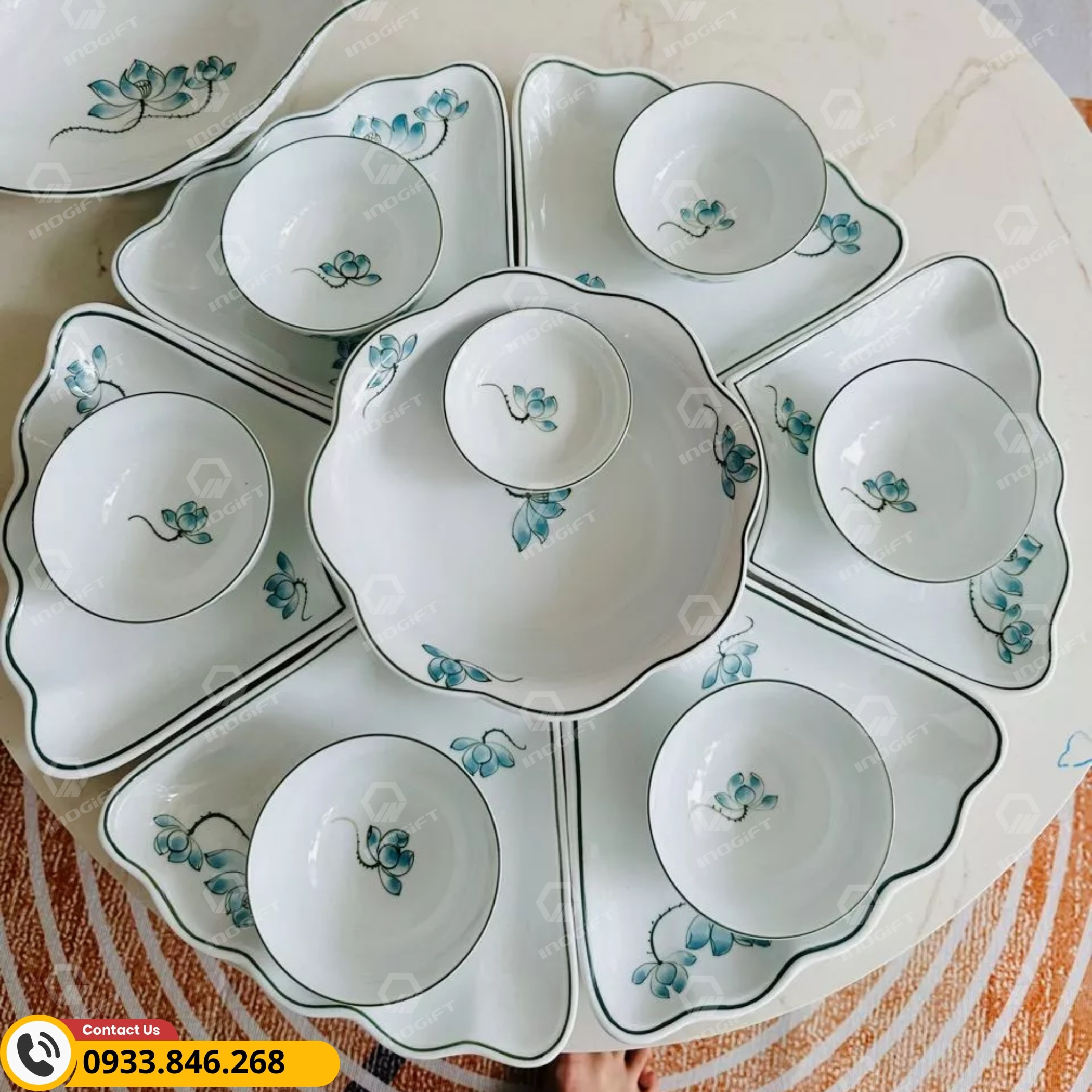 Bộ ấm chén Bát Tràng không chỉ nổi tiếng bởi thương hiệu lâu đời mà còn ở chất lượng thủ công tinh xảo. Mỗi sản phẩm đều được làm tỉ mỉ qua nhiều công đoạn – từ trộn đất, tạo hình, vẽ hoa văn đến nung men – chứa đựng tâm huyết của người nghệ nhân. Chính sự công phu ấy khiến bộ ấm chén trở thành món quà Tết ý nghĩa, sang trọng và đậm bản sắc Việt, rất thích hợp để doanh nghiệp tặng nhân viên như một lời tri ân trân trọng.