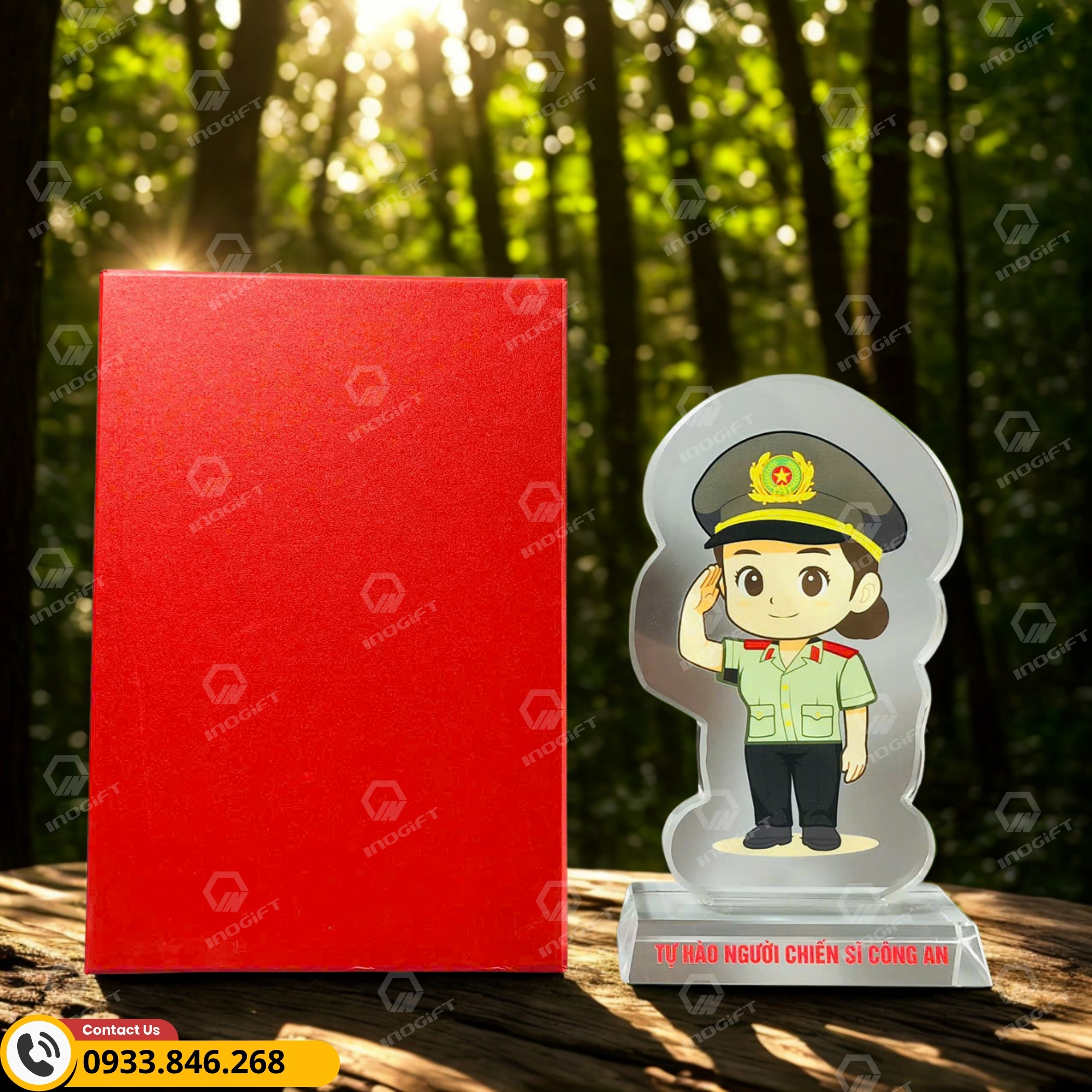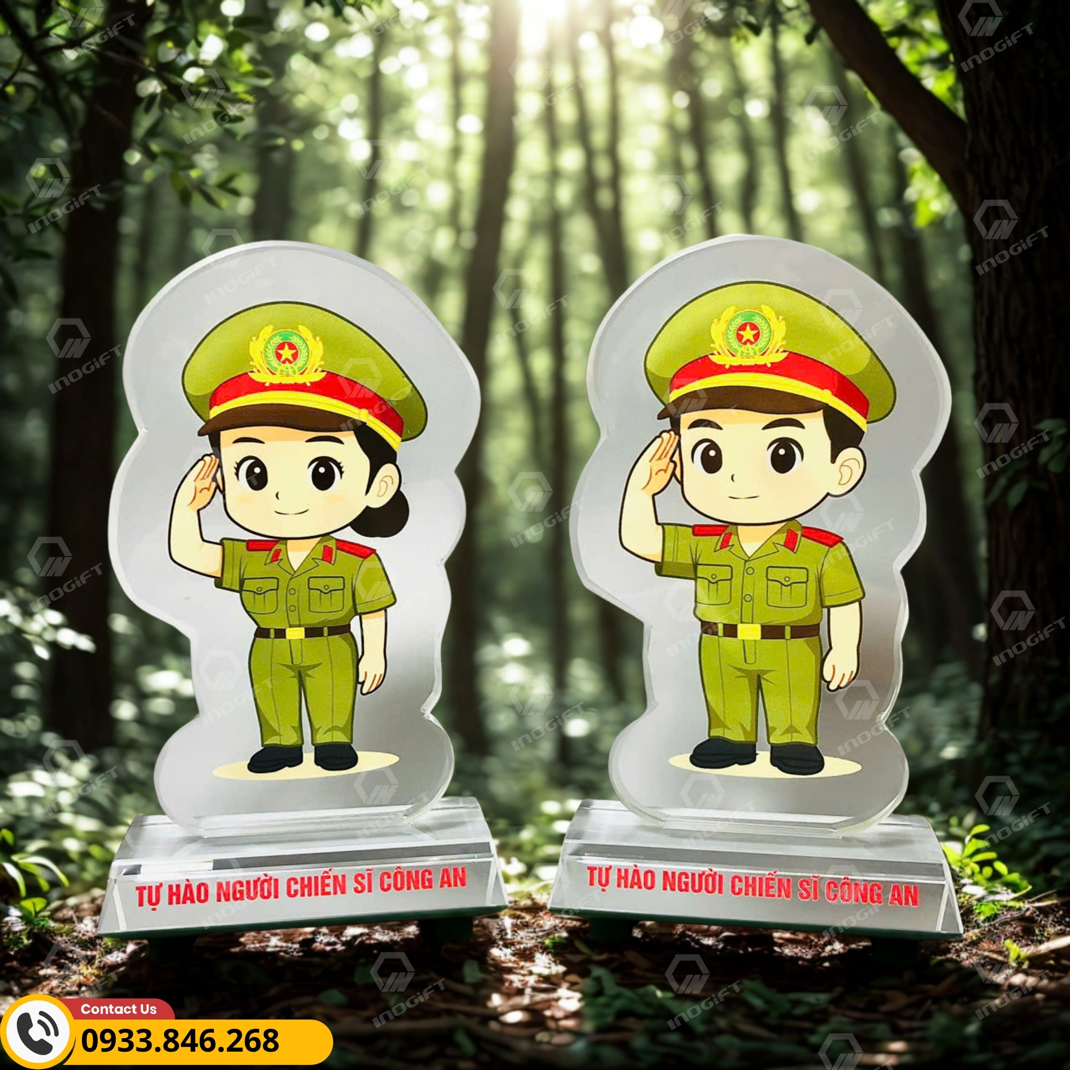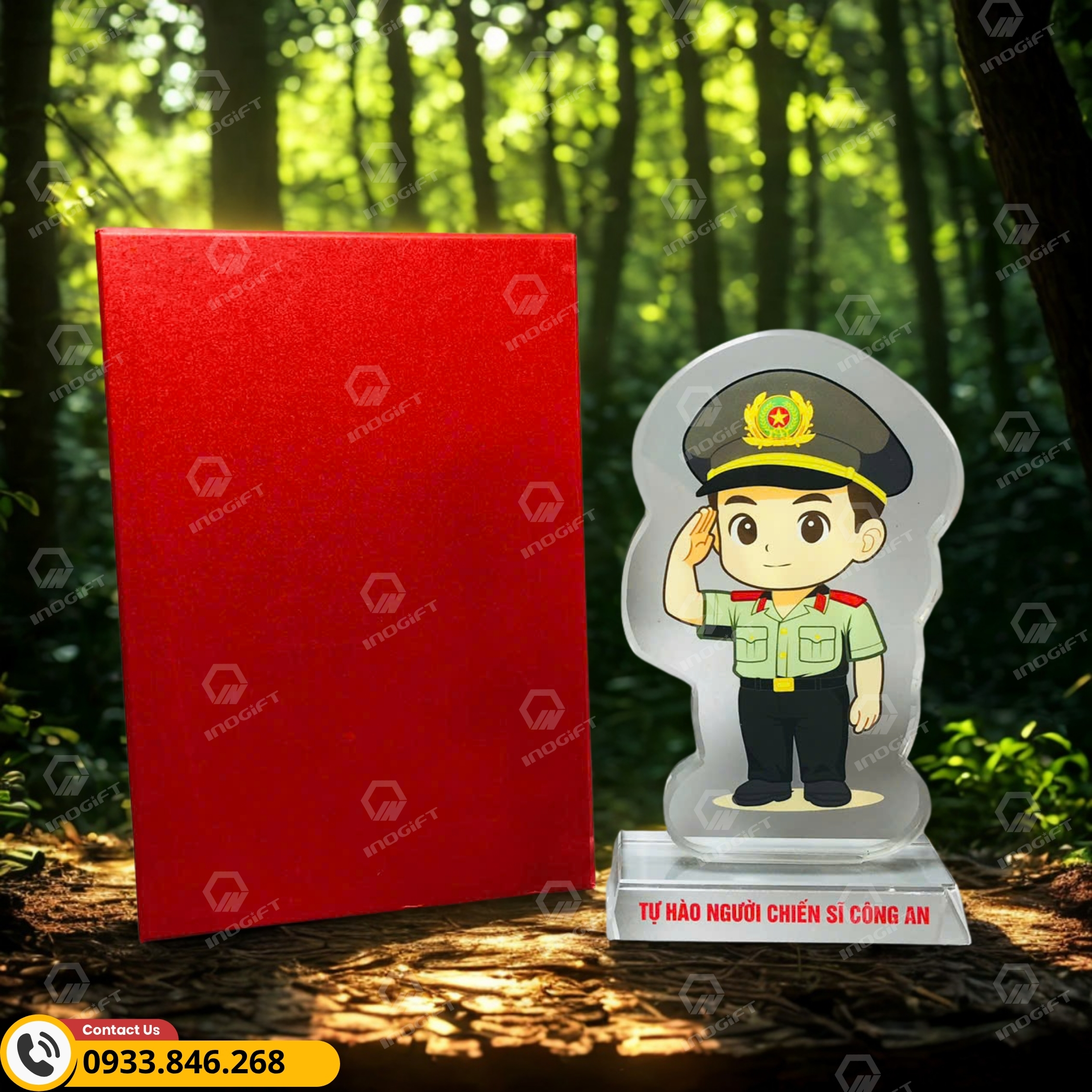 Biểu trưng pha lê khắc tên vinh danh chiến sĩ Công An tiêu biểu, phù hợp làm quà lưu niệm dịp tổng kết, khen thưởng