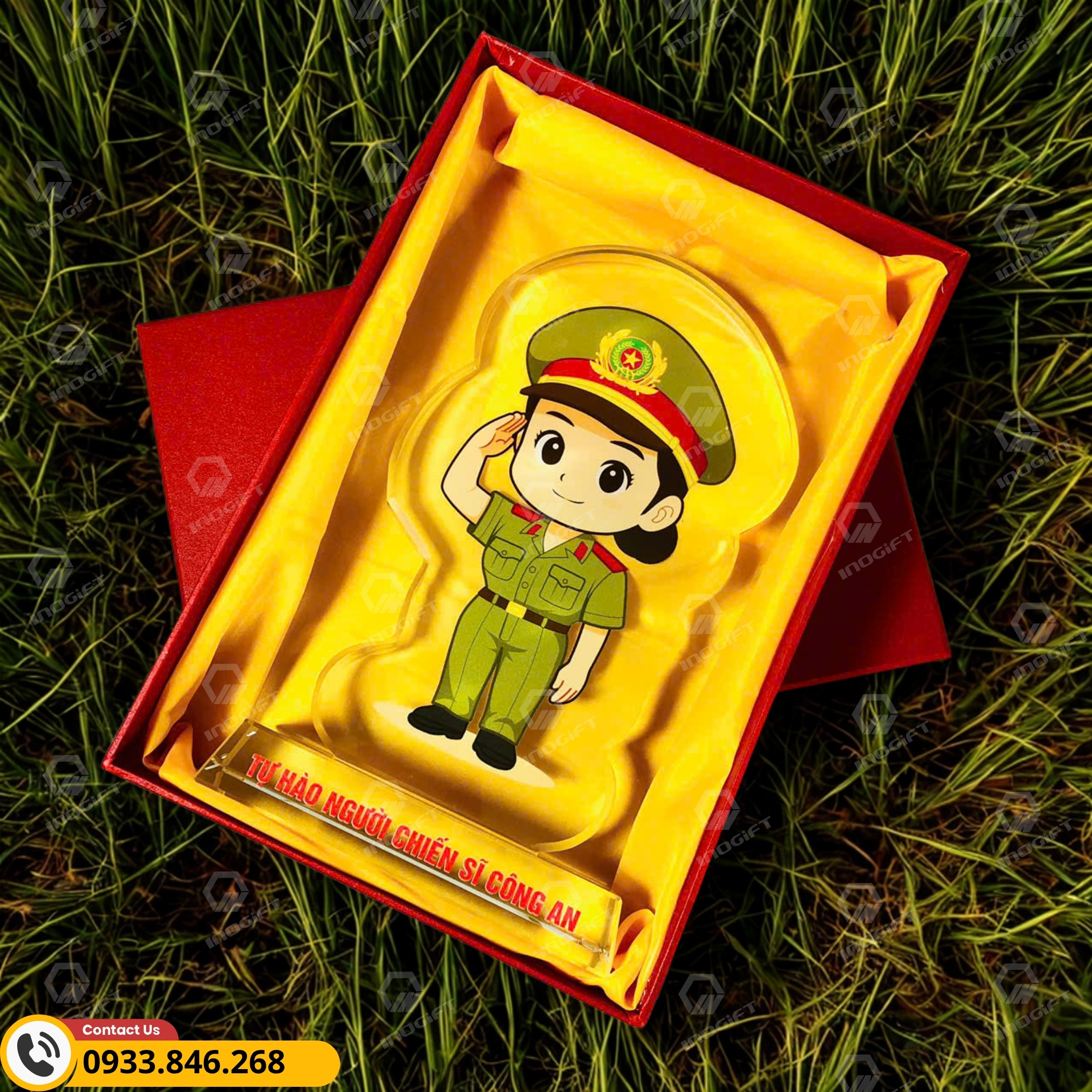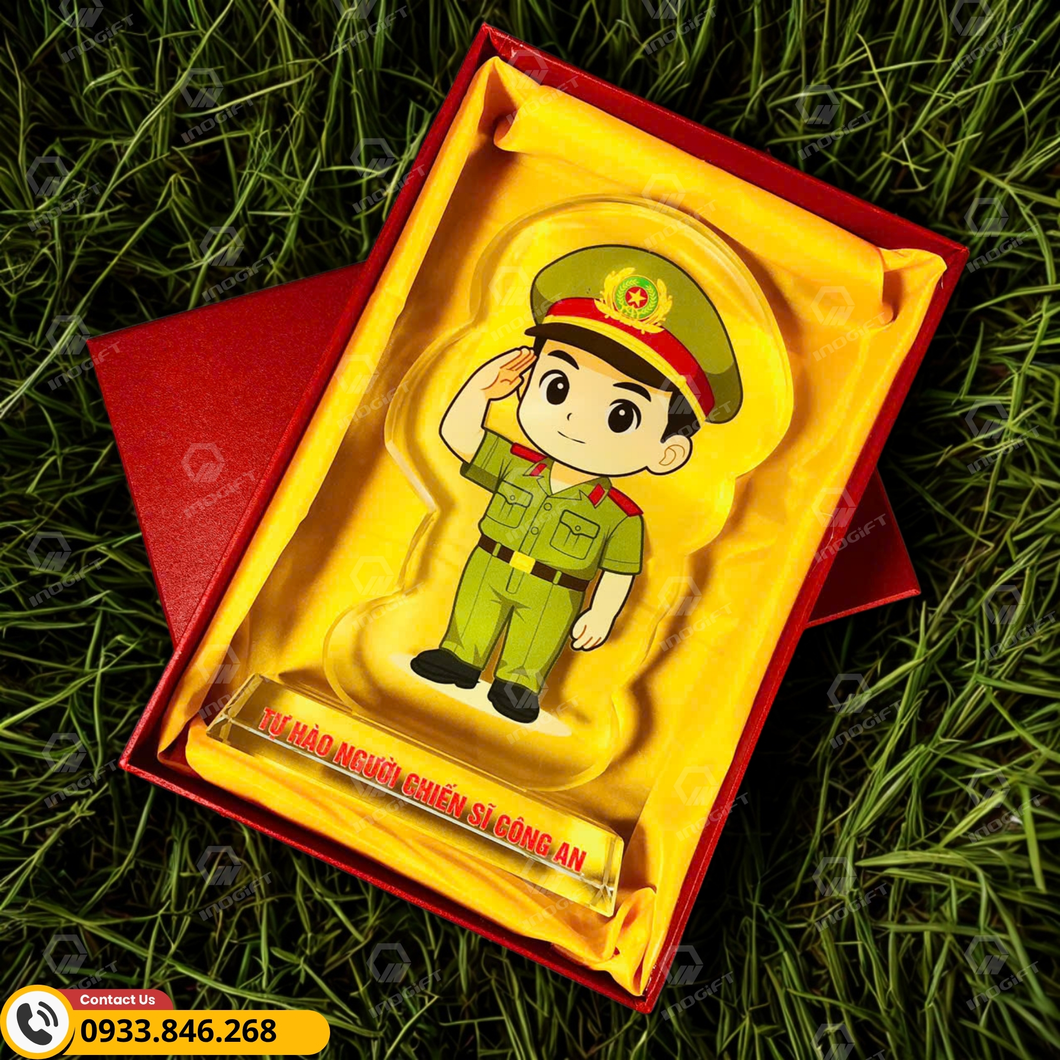 Biểu trưng chibi chiến sĩ Cảnh Sát Nhân Dân chào cờ trang nghiêm, quà tặng kỷ niệm ngành Công An