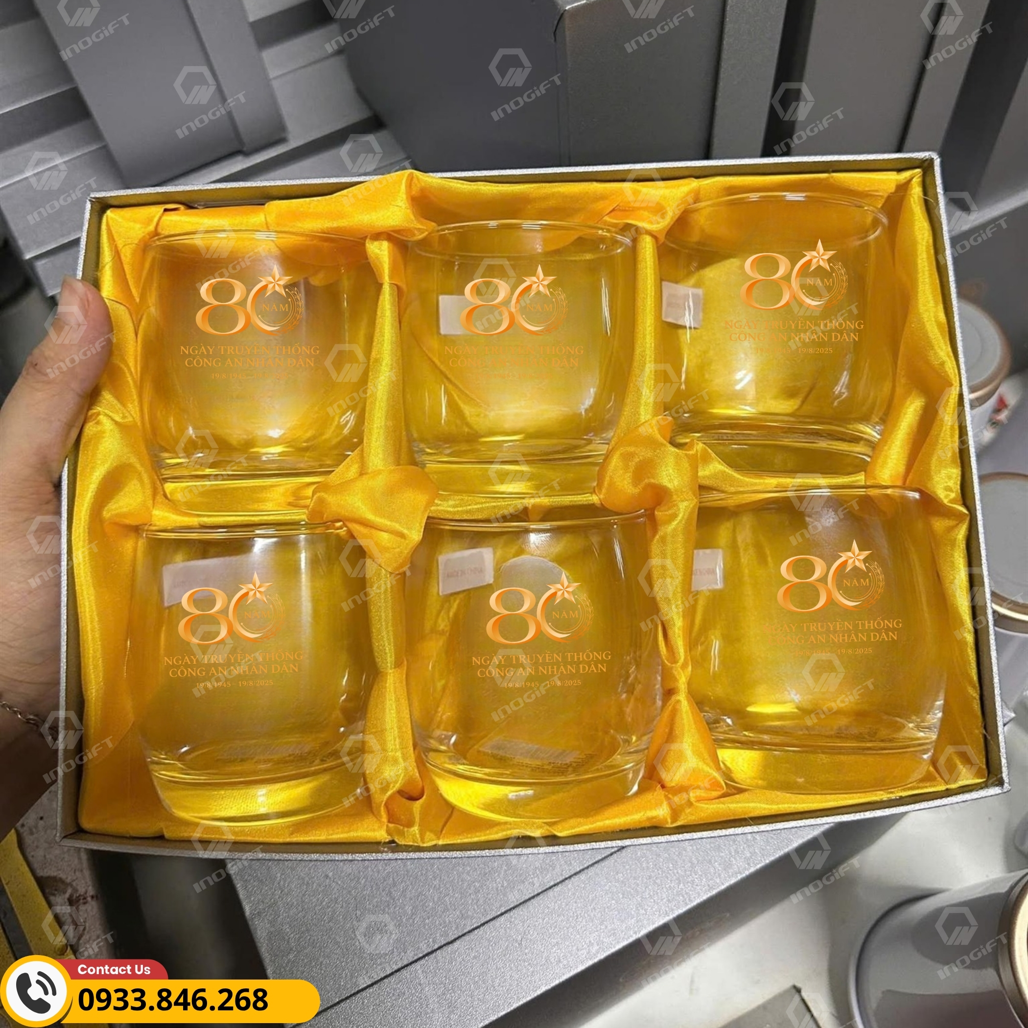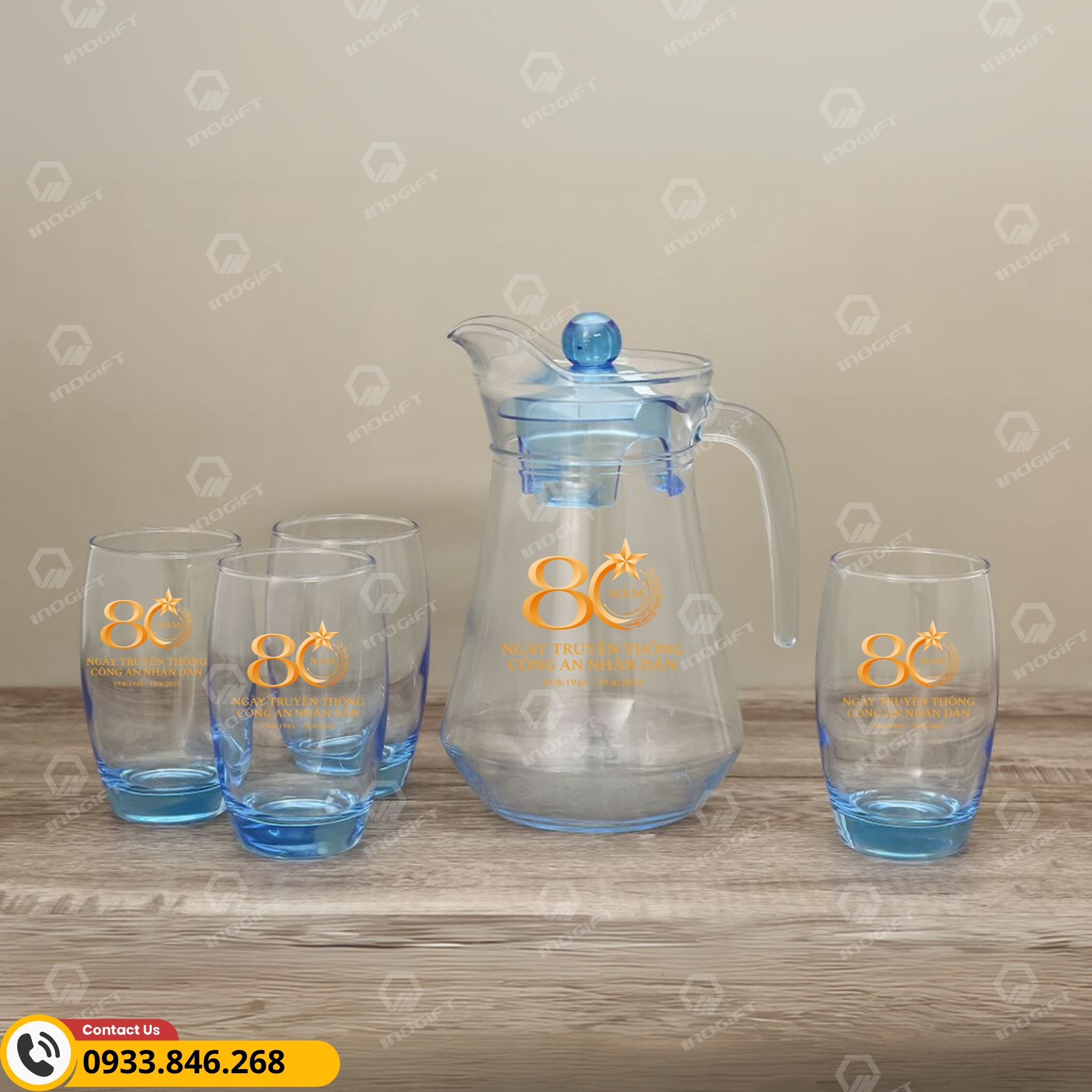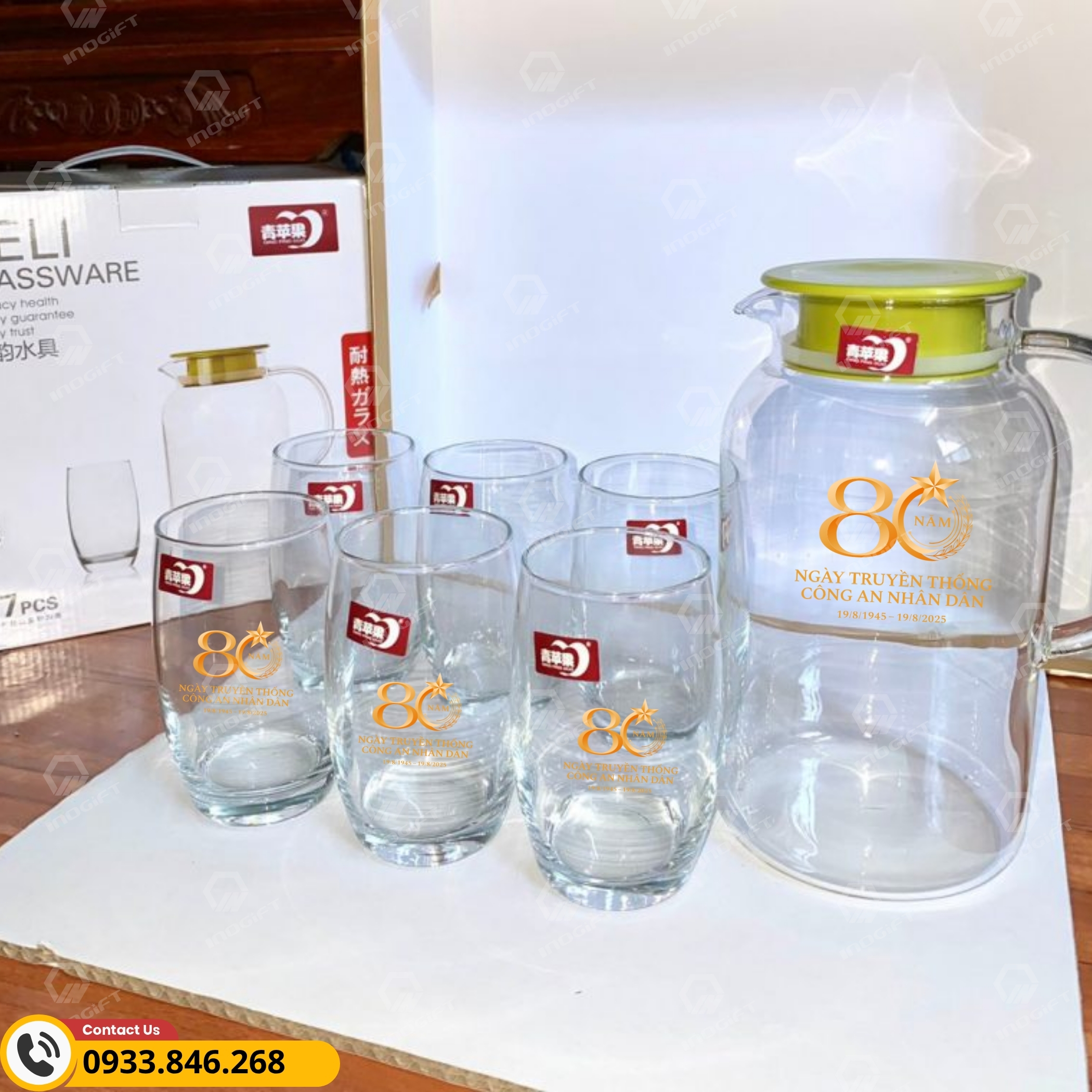 2.7. Bộ bình cốc thủy tinh in logo 80 năm Công an nhân dân