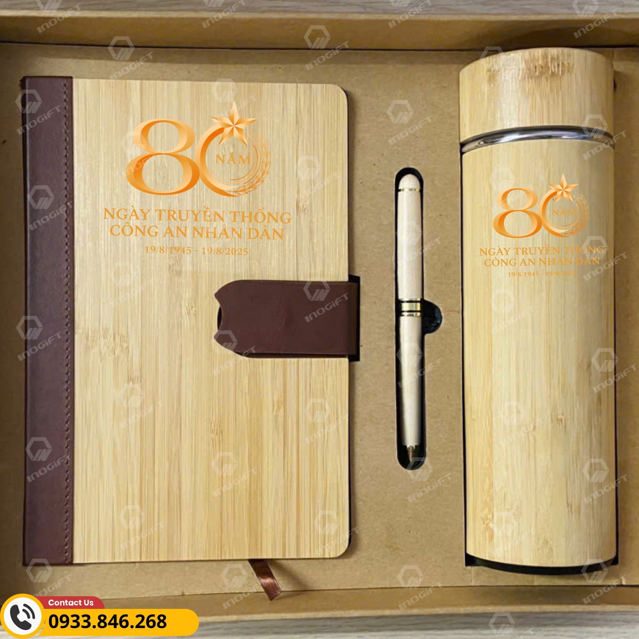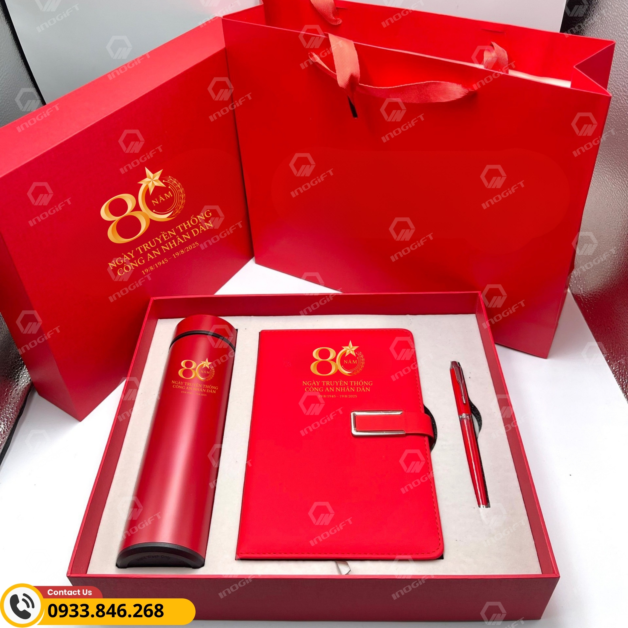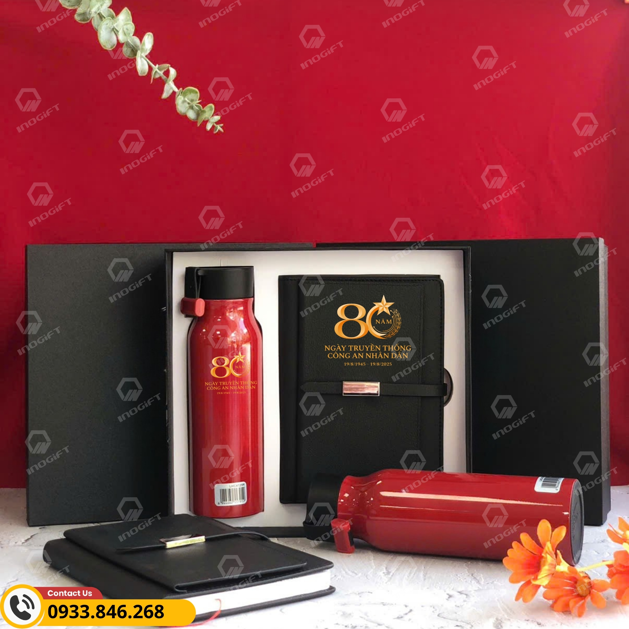 Bộ quà tặng bình, sổ, bút làm quà tặng 80 năm ngành công an