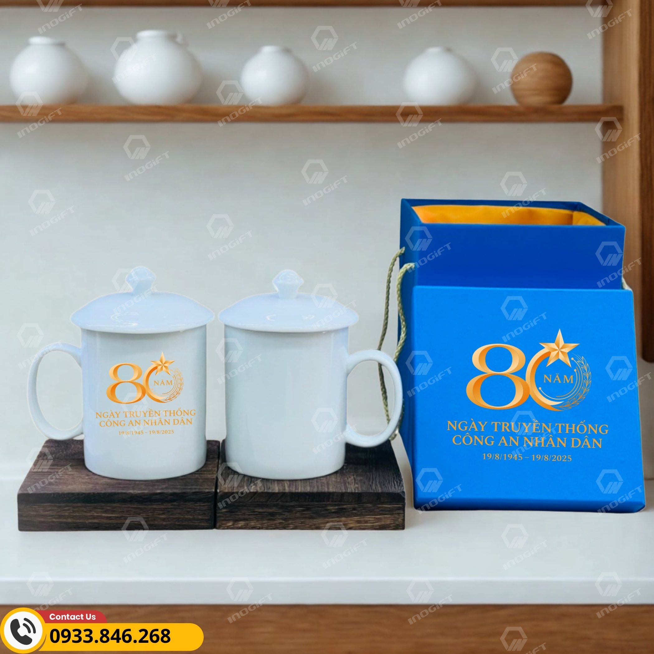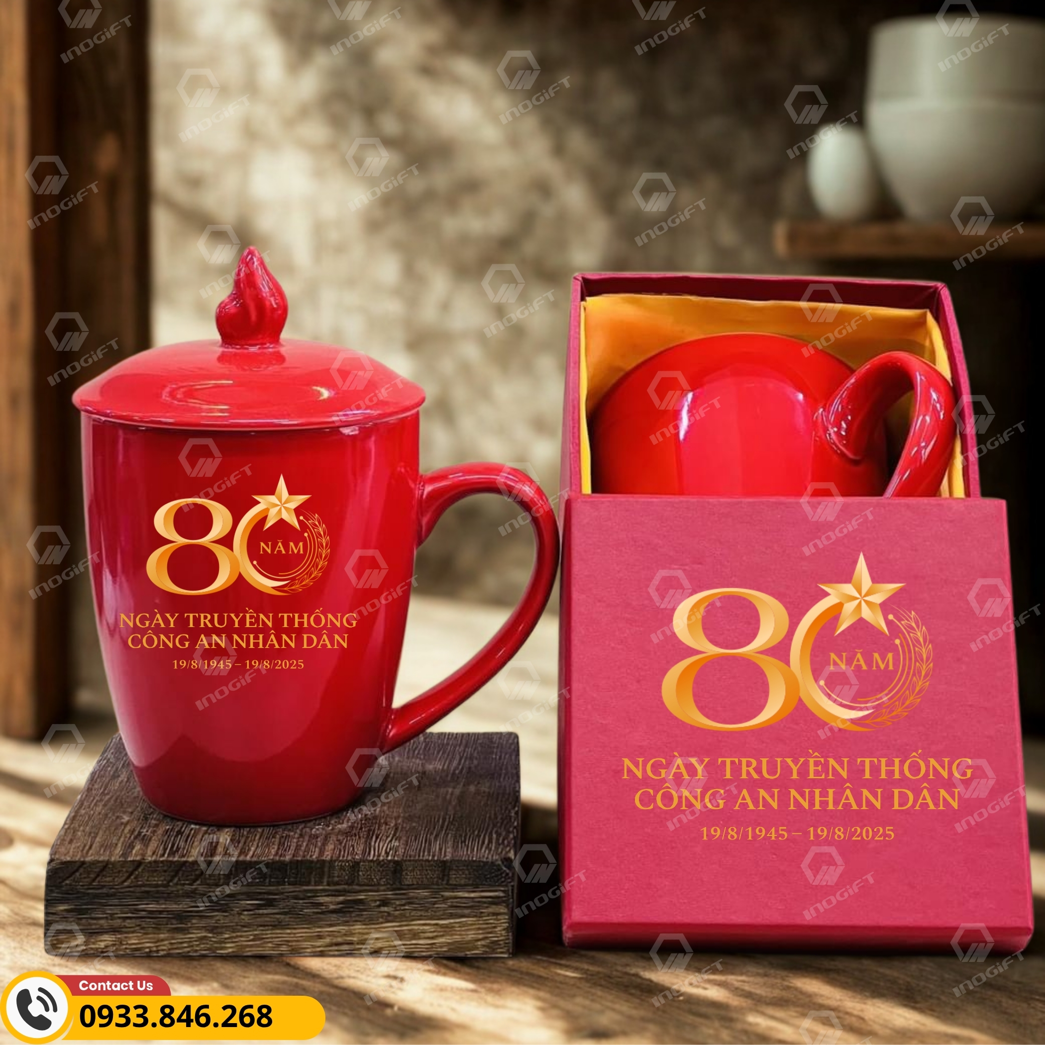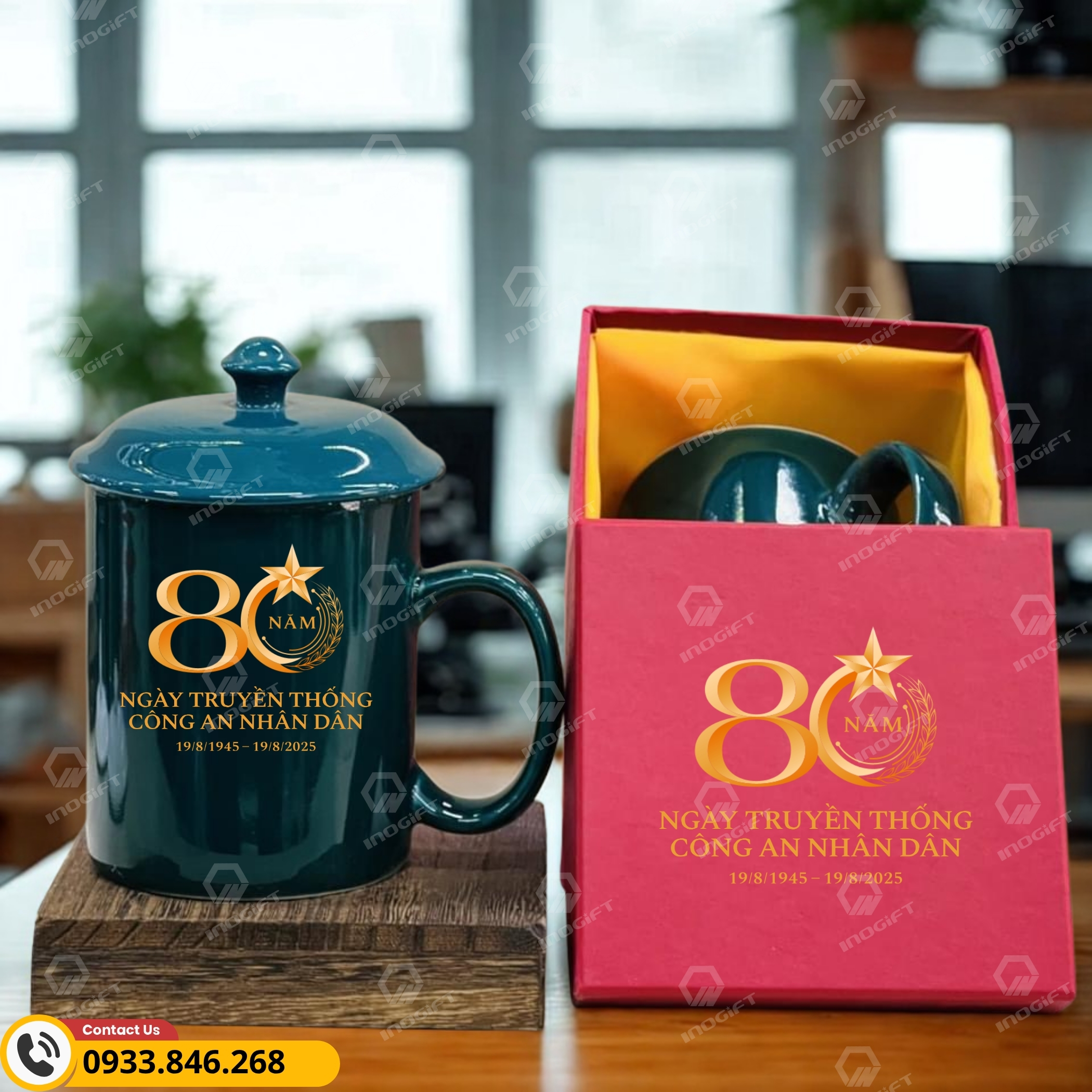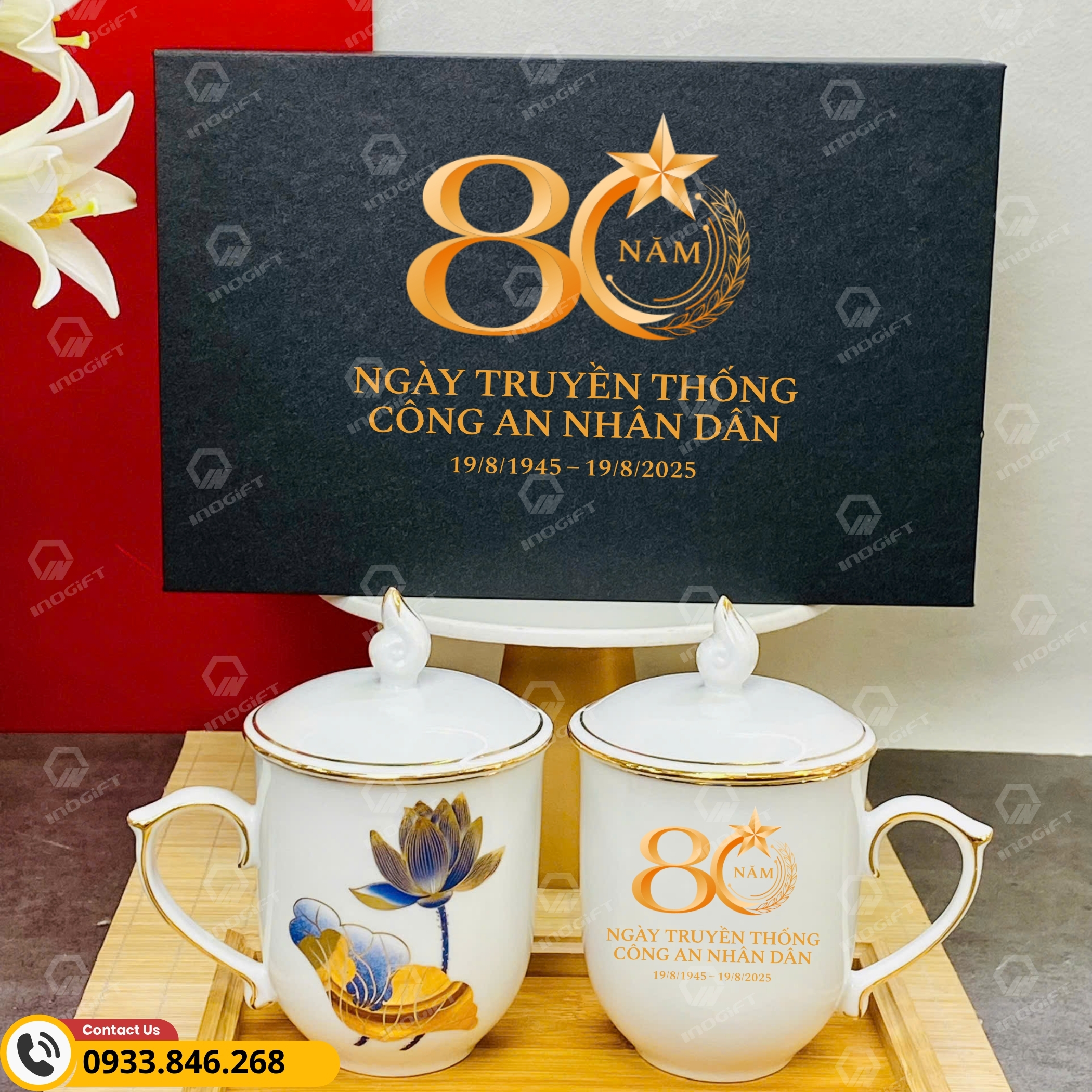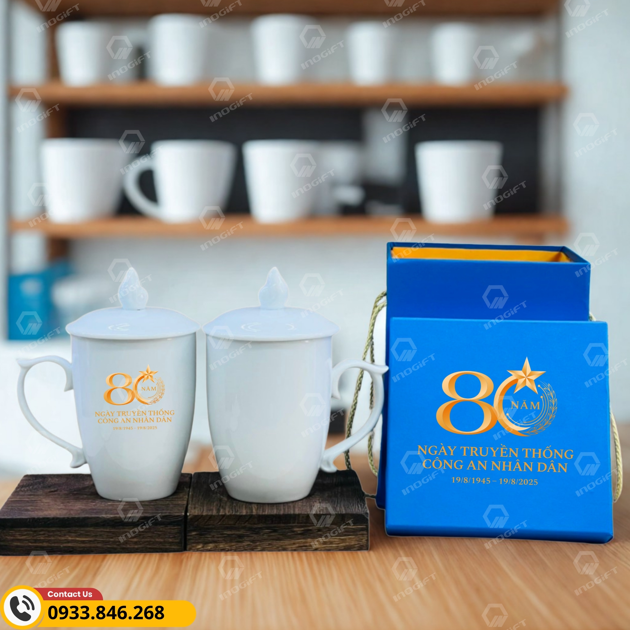 Ly sứ in logo 80 năm là món quà thiết thực, gần gũi, phù hợp sử dụng hàng ngày trong văn phòng hoặc gia đình của các cán bộ, chiến sĩ Công an. Món quà không chỉ mang giá trị sử dụng mà còn là biểu tượng tri ân, ghi dấu hành trình 80 năm vẻ vang của lực lượng Công an Nhân dân. Logo kỷ niệm trên ly nhắc nhở về sứ mệnh bảo vệ an ninh quốc gia, khơi dậy niềm tự hào và tinh thần trách nhiệm, là món quà ý nghĩa để tôn vinh những đóng góp to lớn của ngành trong dịp đặc biệt này.