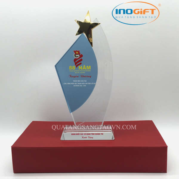 Biểu trưng pha lê tuyên dương cá nhân xuất sắc trong hoạt động làm theo lời Bác dạy, trao tặng vào ngày lễ kỷ niệm 88 năm ngày thành lập Đoàn TNCS Hồ Chí Minh.