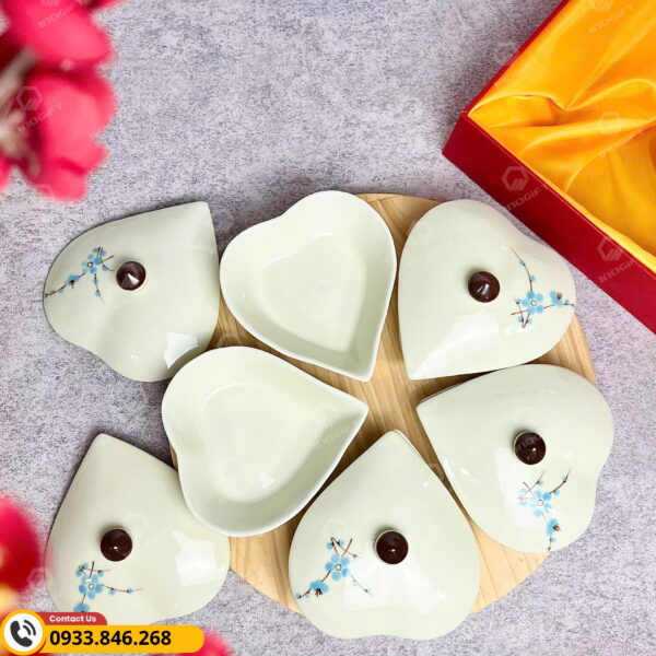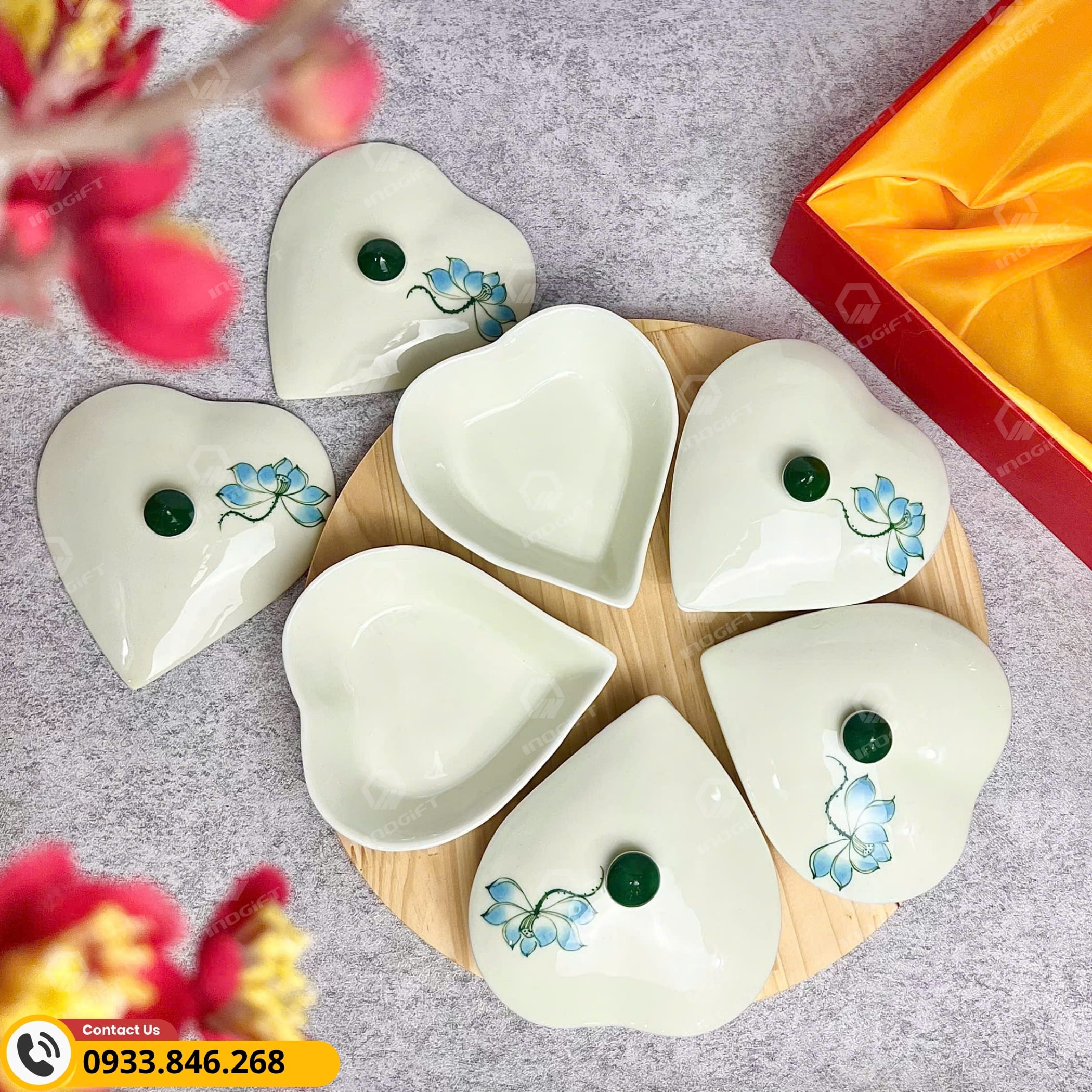Set 5 Hũ Đựng Mứt Tết Hình Trái Tim là một lựa chọn quà tặng Tết tinh tế và ý nghĩa dành cho cán bộ nhân viên trong dịp Xuân 2026. Sản phẩm nổi bật với thiết kế độc đáo hình trái tim, vừa trang nhã lại vừa mang thông điệp yêu thương, gắn kết. Mỗi hũ được chế tác từ gốm sứ Bát Tràng cao cấp, nổi tiếng với độ bền, men sứ trắng ngà sang trọng và an toàn cho sức khỏe.