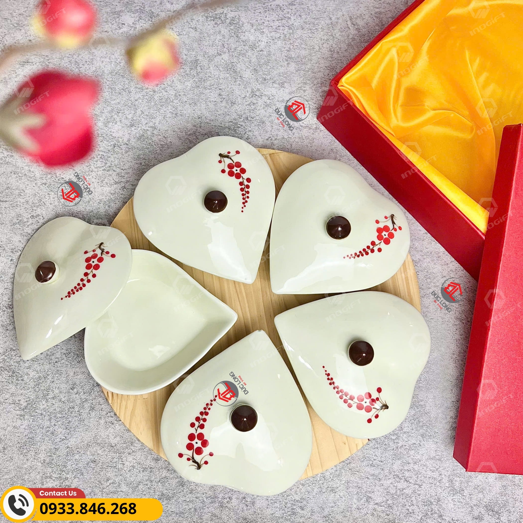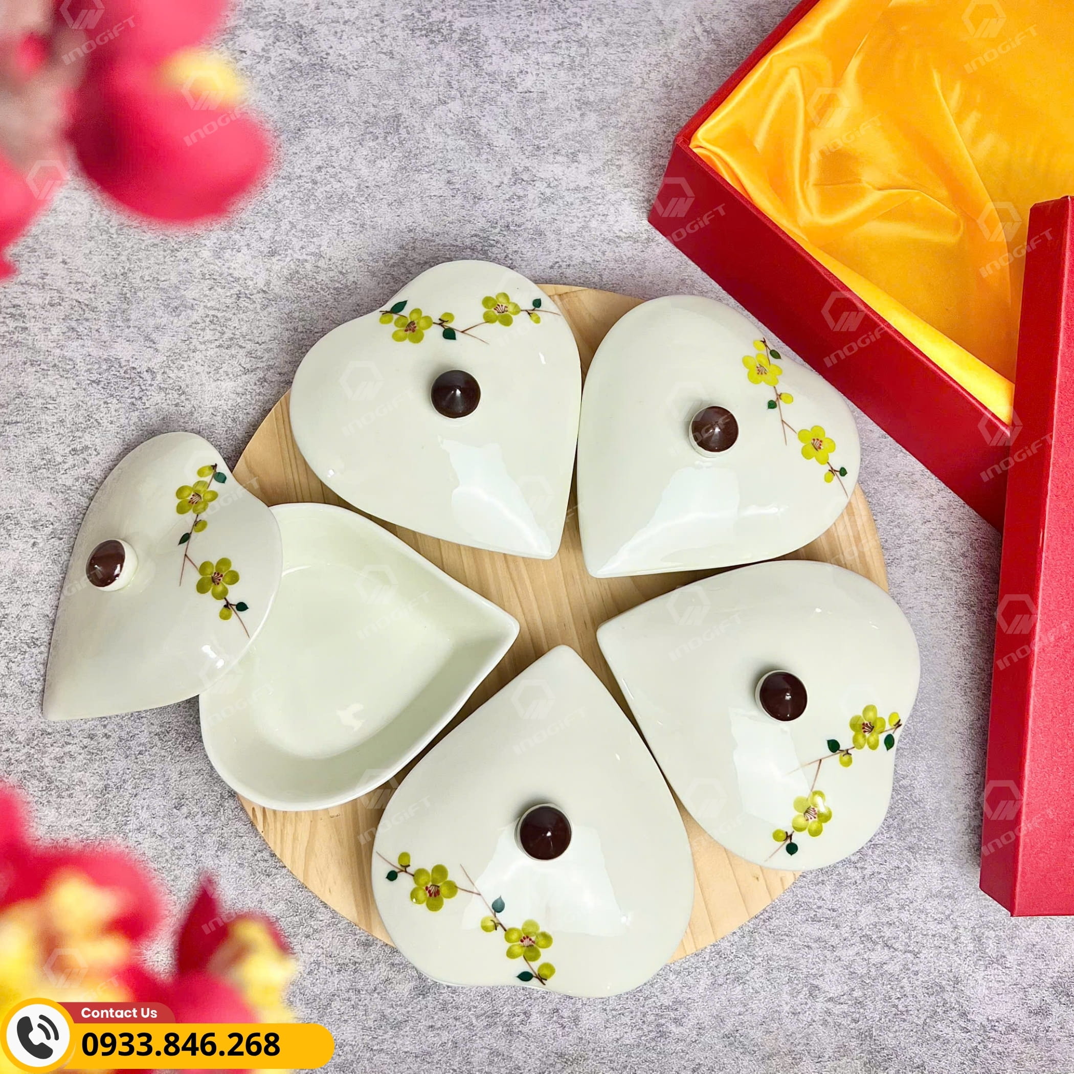 Set 5 Hũ Đựng Mứt Tết 2026 Hình Trái Tim